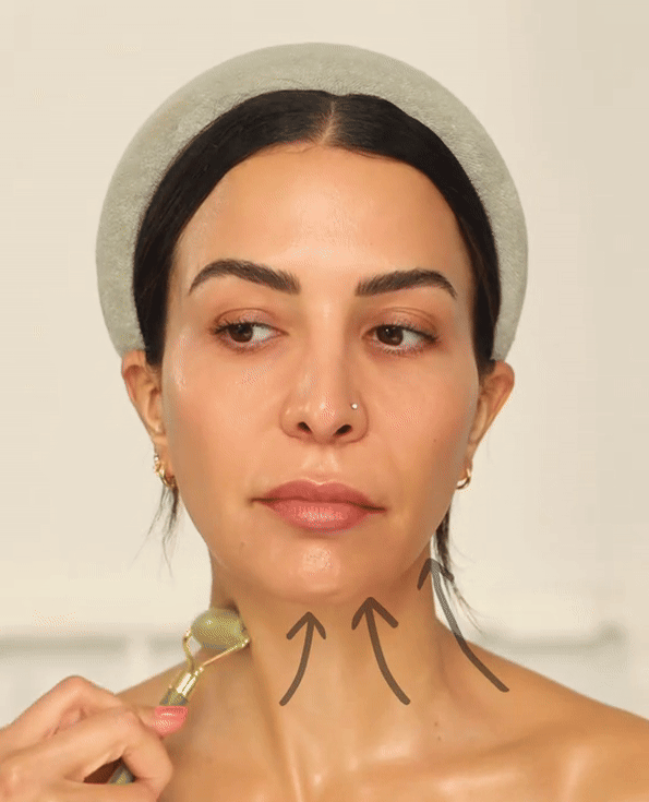 - Massaggia delicatamente con il rullo, sempre dal basso verso l’alto e dall’interno verso l’esterno.